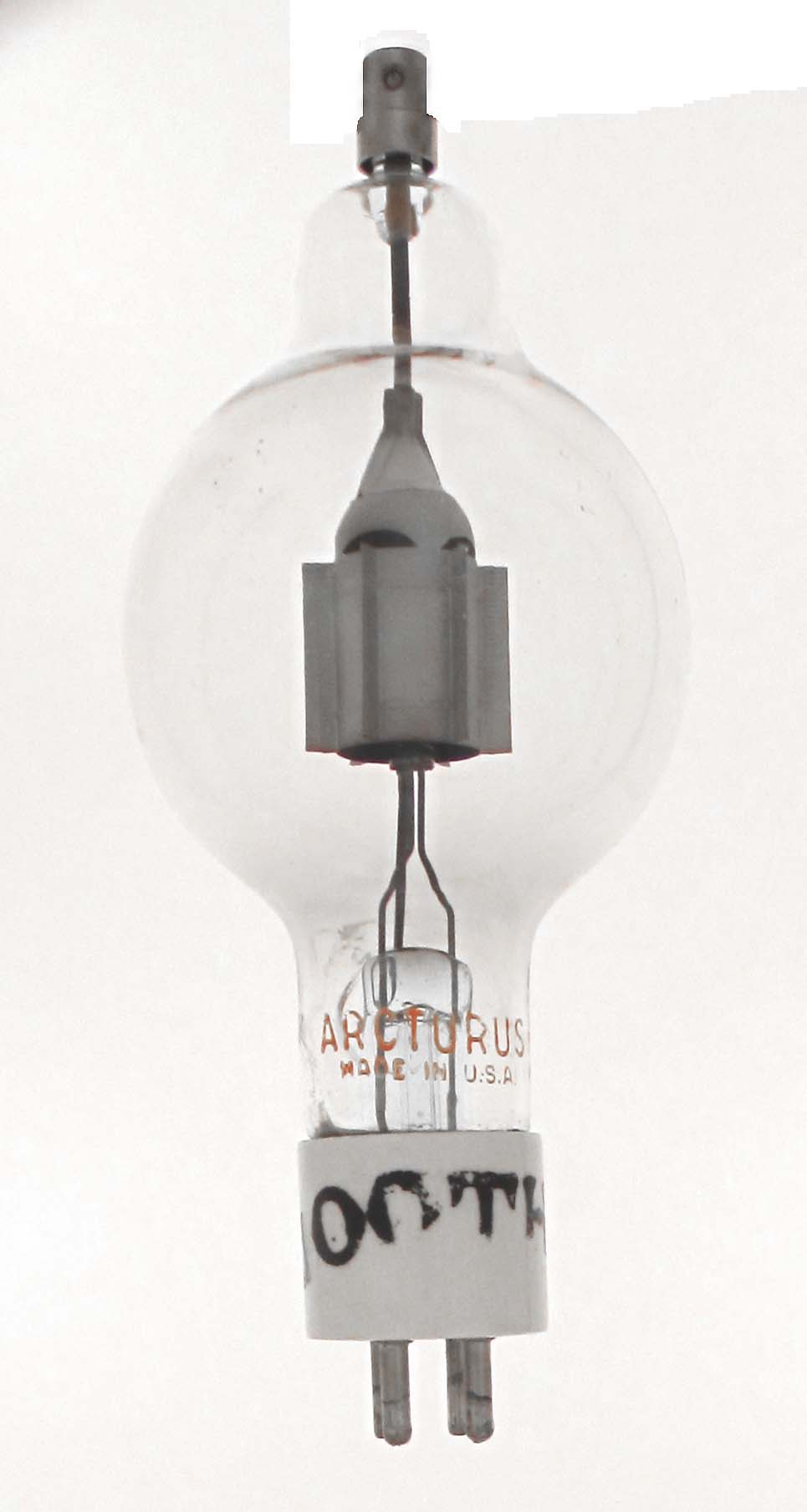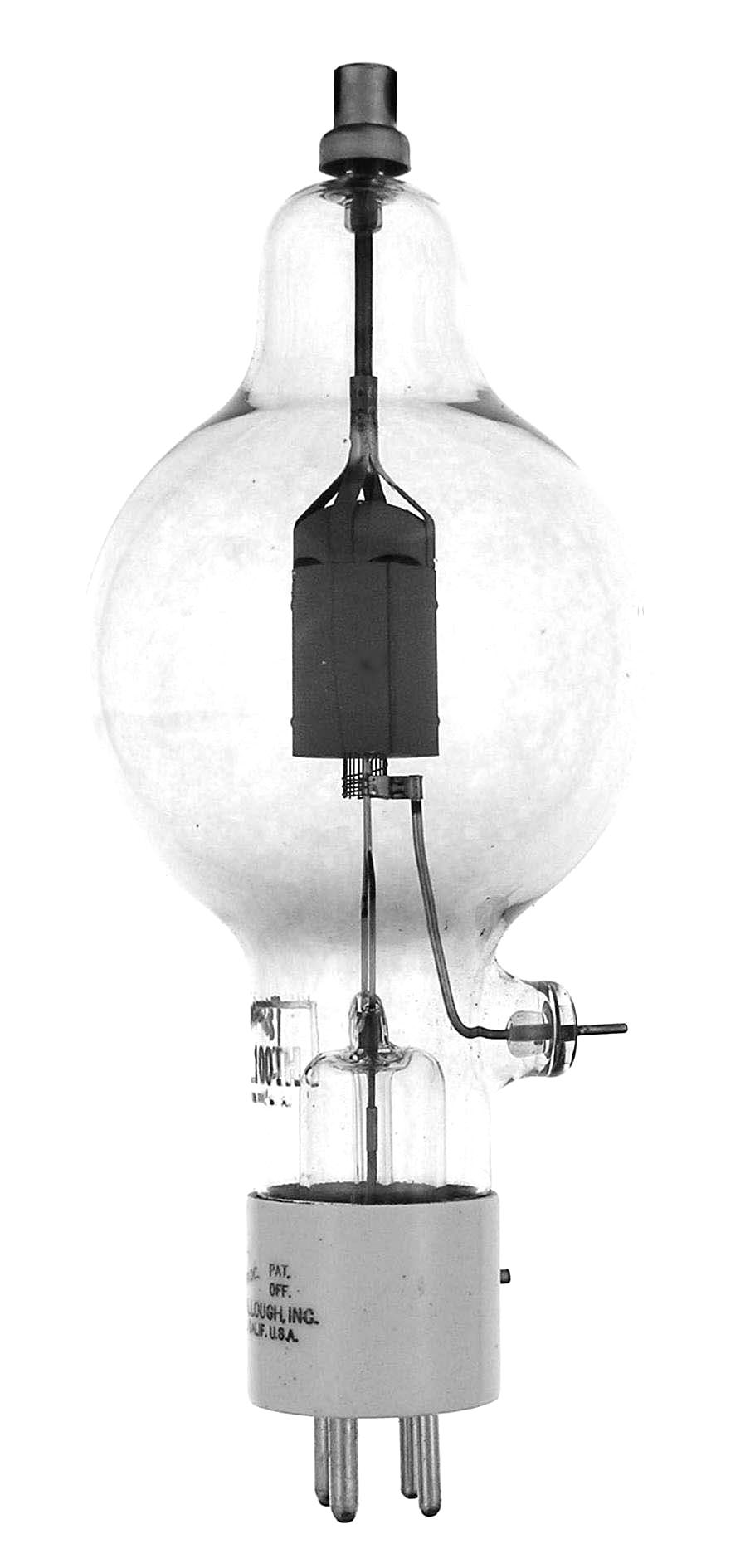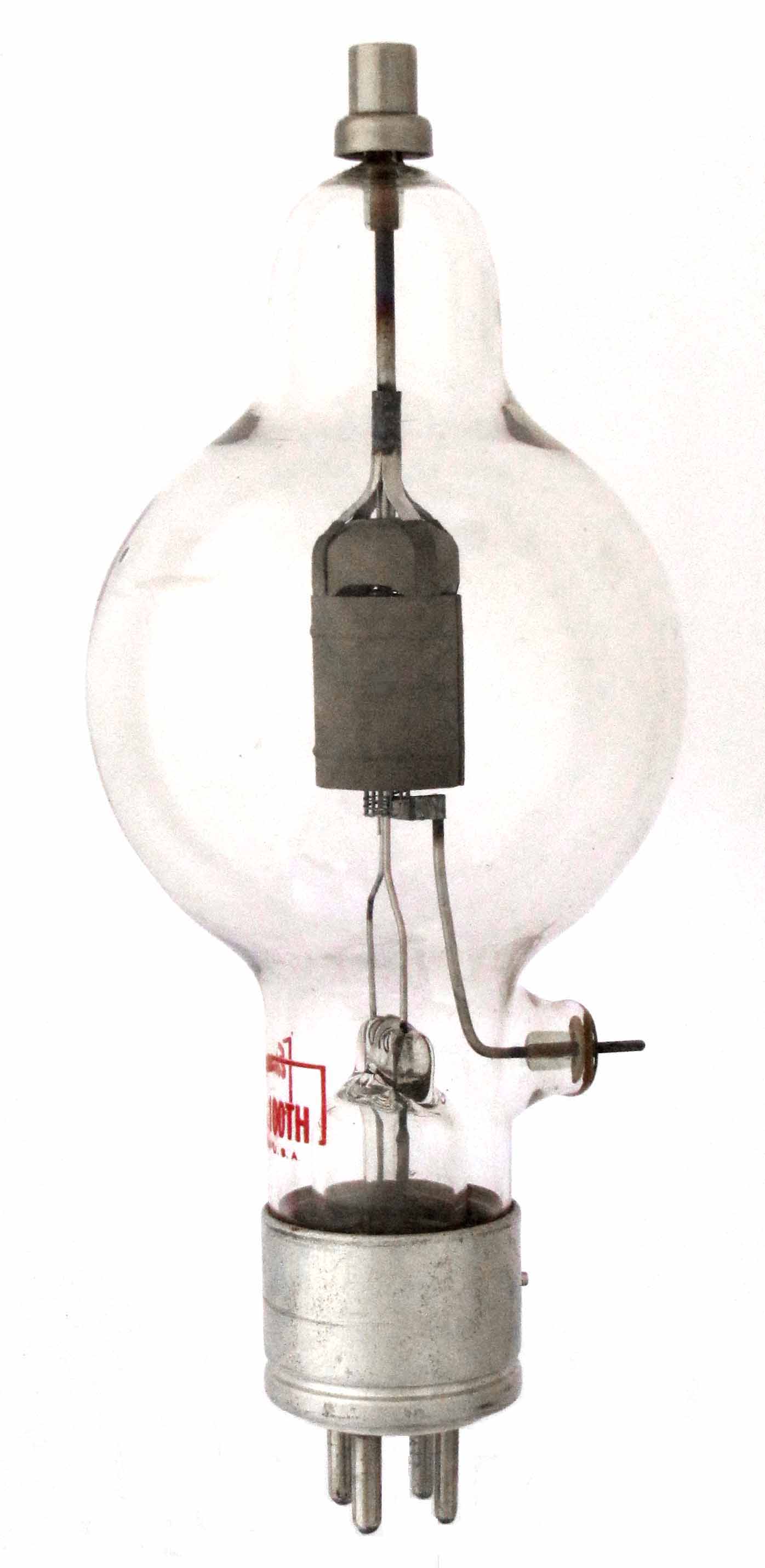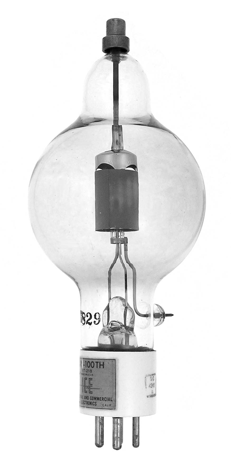 The 100TH or VT-218 is the new designations for the 100T "HI" version made by Eimac. It is rated at 100 watts with full power to 40 MHz and had a mu of 38. The 100TL was the same tube with a mu of 14. The first example is an early example of the Eimac tube with the bent grid support wire and the second shows the shorter wire version. Post war tubes had their construction materials changed. The fifth example was made by General Electronics, the sixth by GE, the seventh by Jennings, the eighth by ICE, the ninth by Lewis and Kaufman, the tenth by EEI, the eleventh with the black base by Industro, the twelfth by H&K and the thirteenth by Sylvania. The foutreenth example is marked as an Arctarus tube but is obviously an Eimac tube that has been re-branded. The glass work around the grid seal is very poor and could have been a reject. The Japanese designation for this tube is the 4T17.