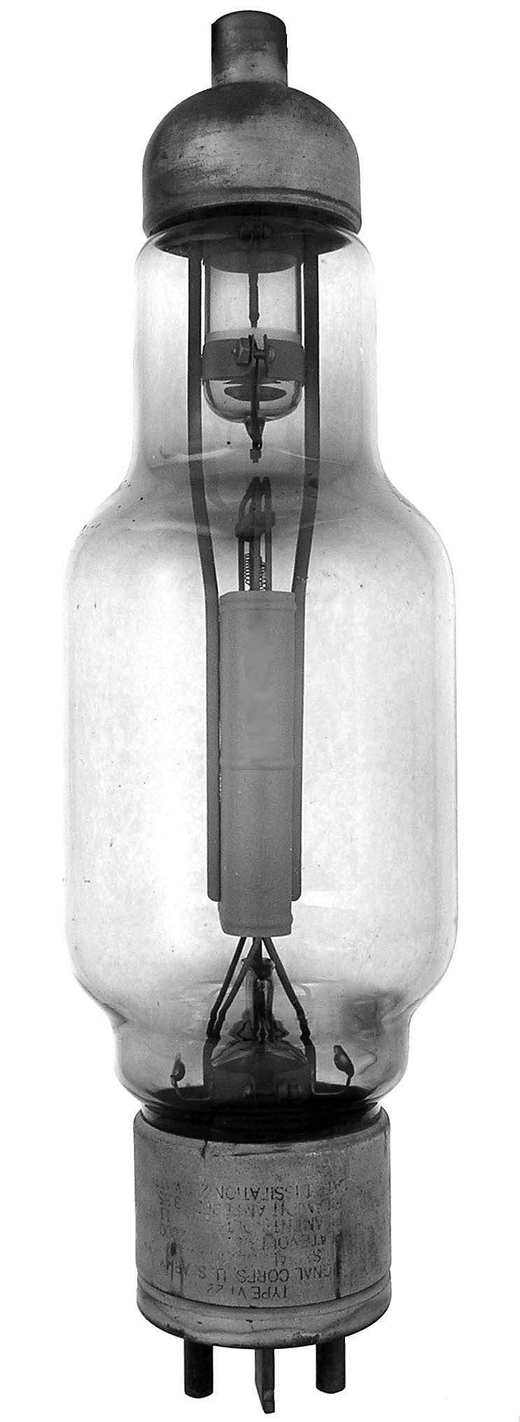 The 204A or VT-22 and 38104, is a 250 watt triode with a mu of 23. Maximum frequency for full power is 3 MHz. These tubes replaced the UV204A. The first example is an RCA/DeForest and is also marked with both the RCA and the DeForest number 204A/504A. With this production, the UV prefix was dropped. The second is a later RCA with slightly different construction. The third was made by Sylvania, the fourth by Westinghouse, the fifth by United and the sixth by Amperex. The DeForest company used the 504A number. A similar tube was made in Europe by Philips and designated TB2/250 . These tubes were recommended to be mounted anode down so the markings on the bases and glass are usually upside down as photographed. These tubes were still in production after WWII.