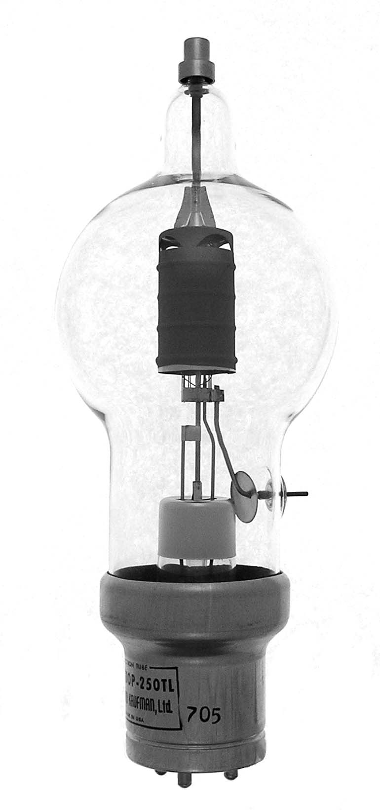 The 250TL or VT-130 replaced the 250T "LO" version in the late 1930s. These are 250 watt triodes with a mu of 14. These tubes had a new plate cap structure and caps over the anodes. They are usable up to 40 MHz at full rating. When first announced by Eimac, the maximum plate voltage was 3000 and the amplification factor was 13. The third example was made by Lewis and Kaufman.