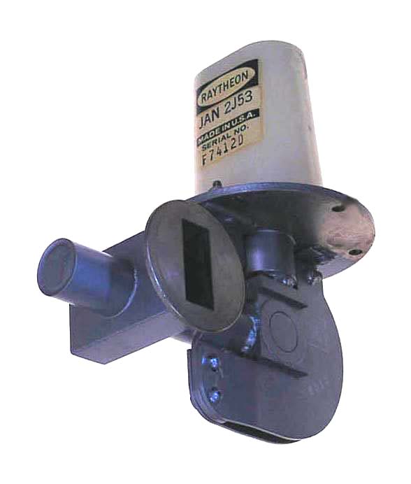 The 2J53 is a waveguide-output, external-magnet magnetron tuned for 9.3 to 9.4 GHz. This was an improved 725A. Length = 5.87" Width = 5.12" Max voltage = Max current = Fil voltage = 6.3 Fil current = GOTO INDEX