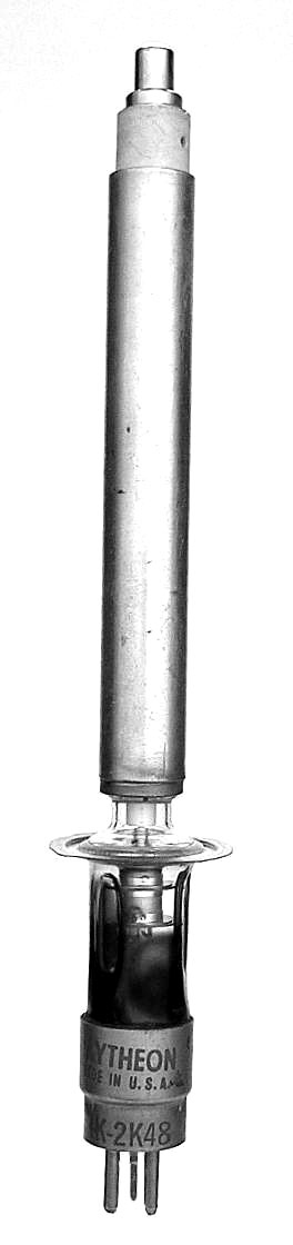 The 2K48 is a klystron. It will operate to 11 GHz. Length = 7.50" Diameter = 1.13" Max resonator voltage = 1250 Reflector voltage range = -175 to -300 Fil voltage = 6.3 Fil current = .575 amp GOTO INDEX
