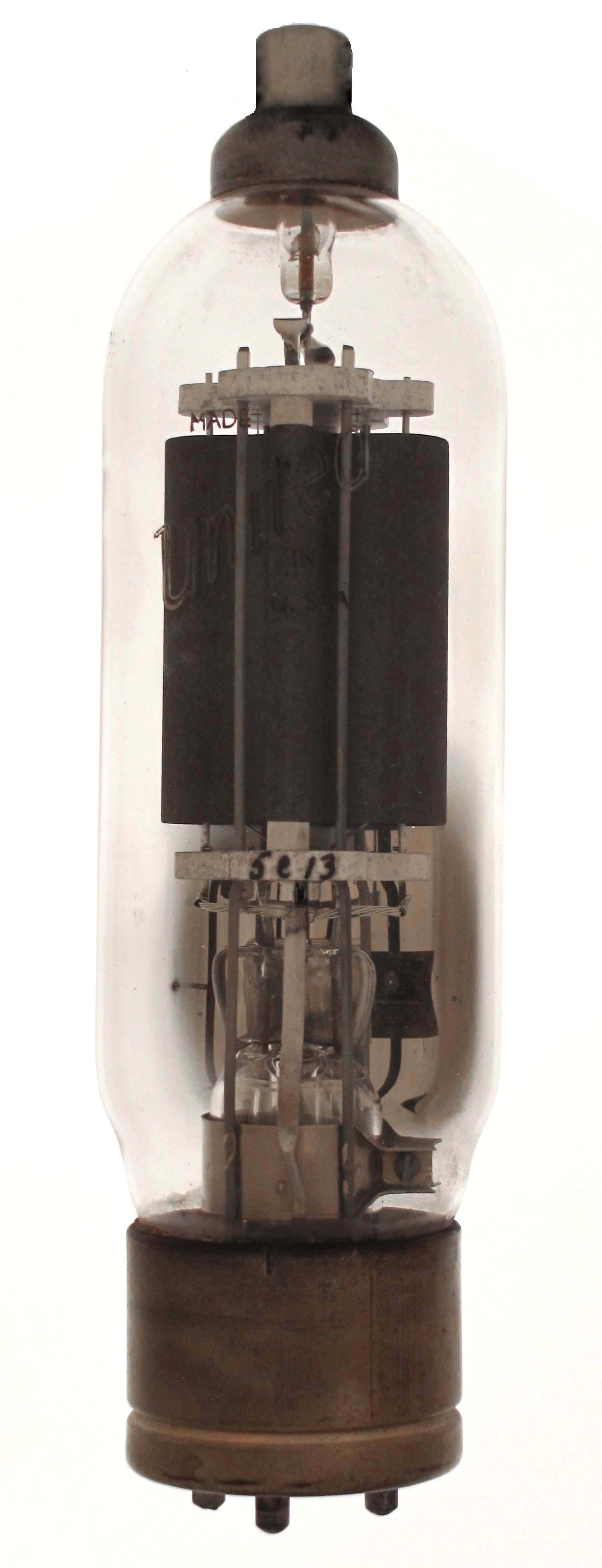 The 303U is a 125 watt triode with a mu of 21 made by United for use in diathermy. Length = 8.50" Diameter = 2.31" Max voltage = 1500 Max current = 200 ma Fil voltage = 10 Fil current = 3.25 amps GOTO INDEX