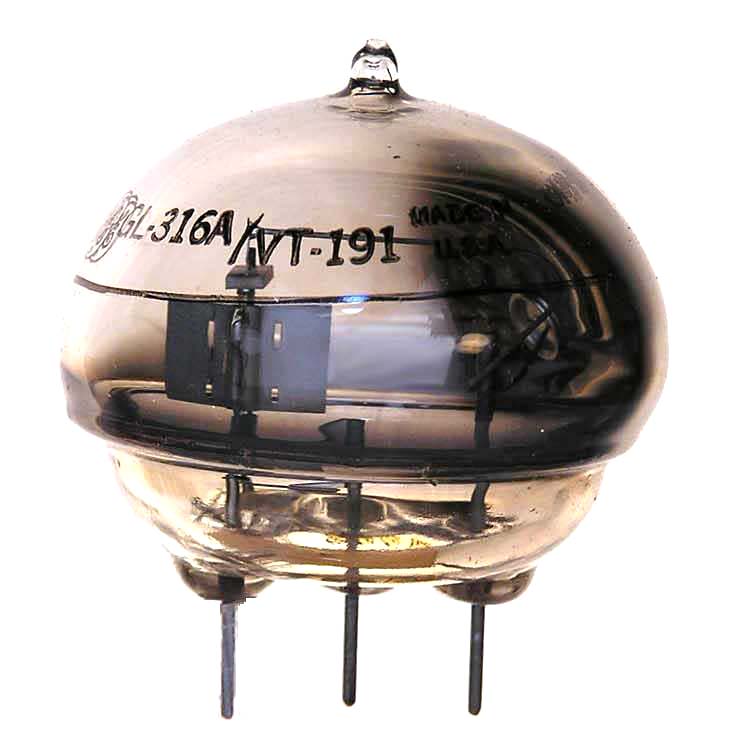 The 316A is a 30 watt triode with a mu of 6.5 and an upper frequency limit of 750 MHz. This "doorknob" tube was used in WWII radar and IFF equipment.