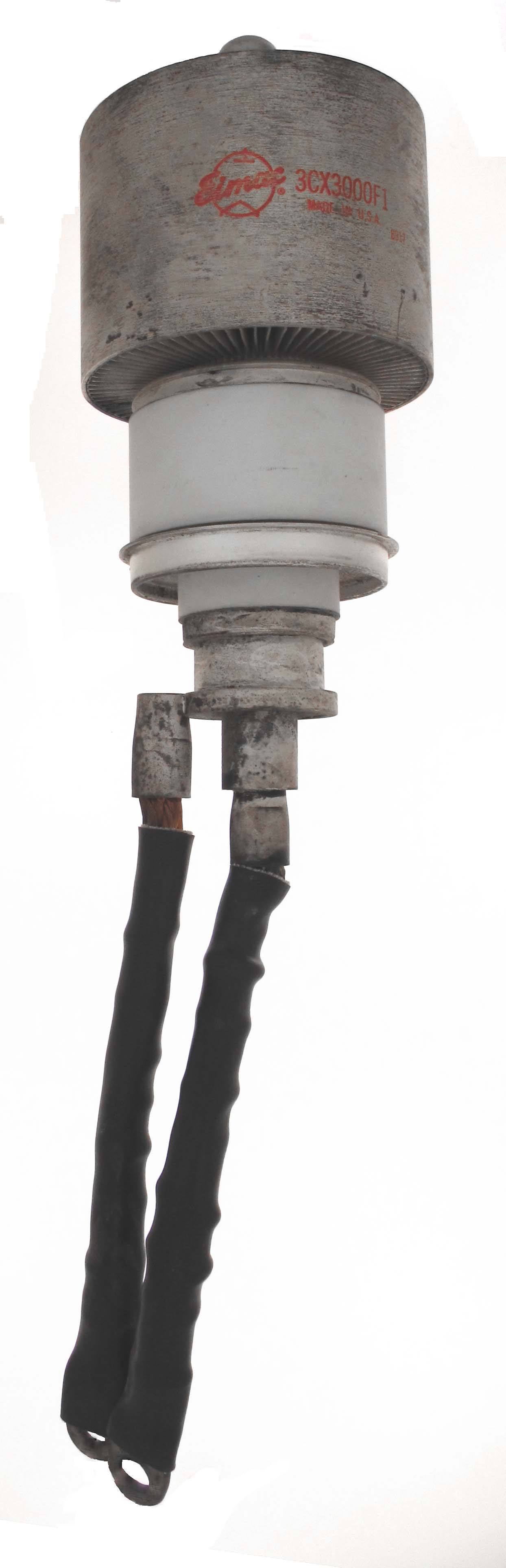 The 3CX3000F1 or 8239 is a 4000 watt, forced air cooled, triode with a mu of 5 and a maximum frequency of 110 MHz for full ratings.