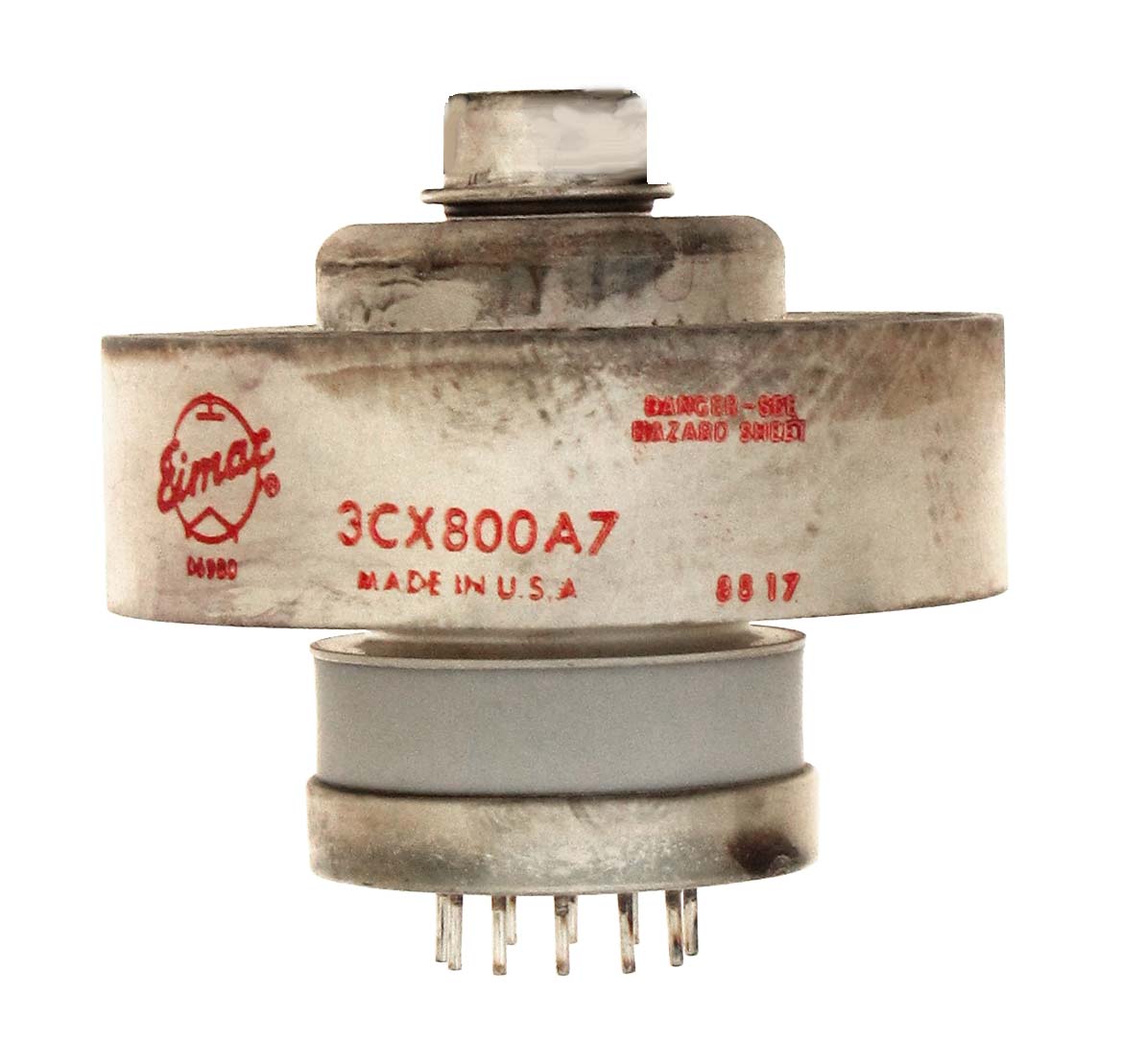 The 3CX800A7 is an 800 watt dissipation triode with a mu of 200 that requires forced air cooling. Full ratings to 350 MHz.