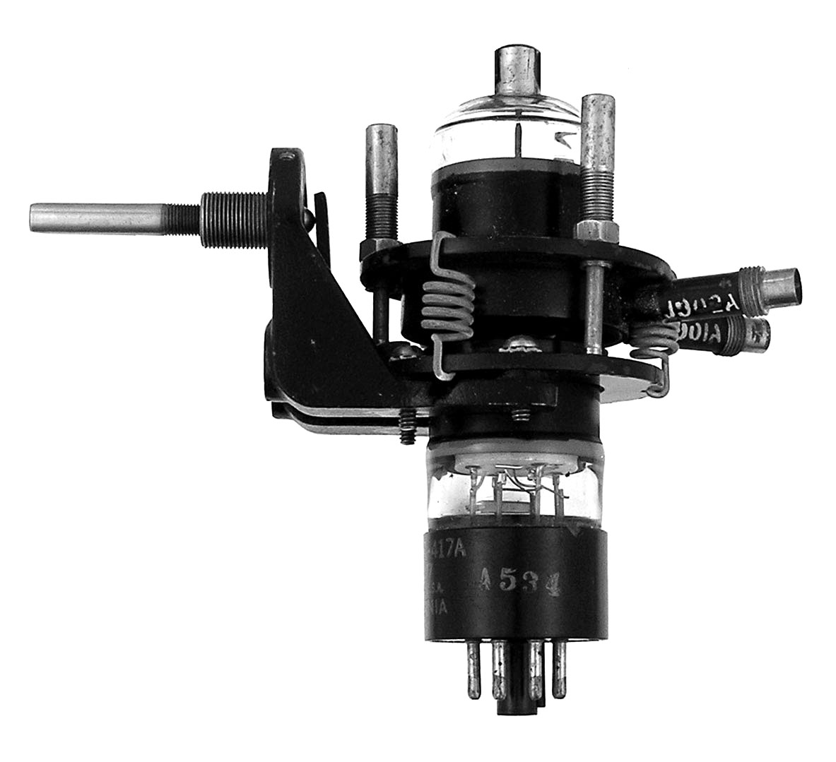 The 417A (AKA VT-277) is a 250 mW klystron designed to mechanically tune from 2650 to 3330 MHz. Length = 4.75" Diameter = 5.50" including tuning shaft and outputs Max voltage = 1250 Max current = Fil voltage = 6.3 Fil current = 1.3 amps GOTO INDEX