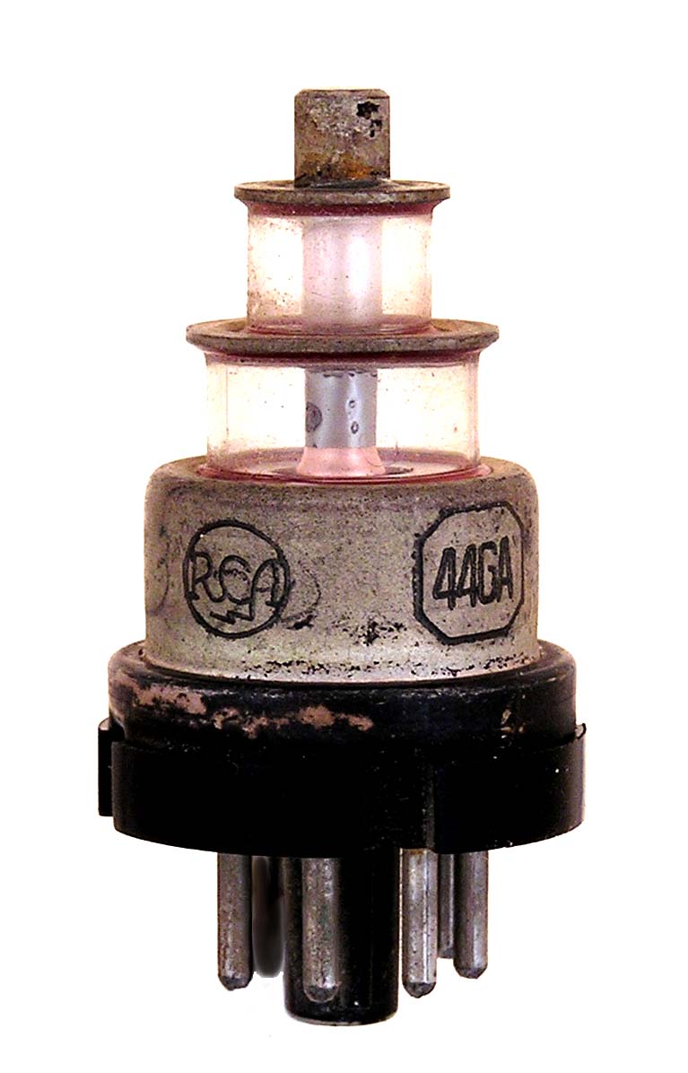 The 446A is a triode designed for high frequency. The first example was made by RCA and the second by GE (GL-446A). Length = 2.50" Diameter = 1.25" Max voltage = 250 Max current = 15 ma Fil voltage = 6.3 Fil current = .75 amp GOTO INDEX
