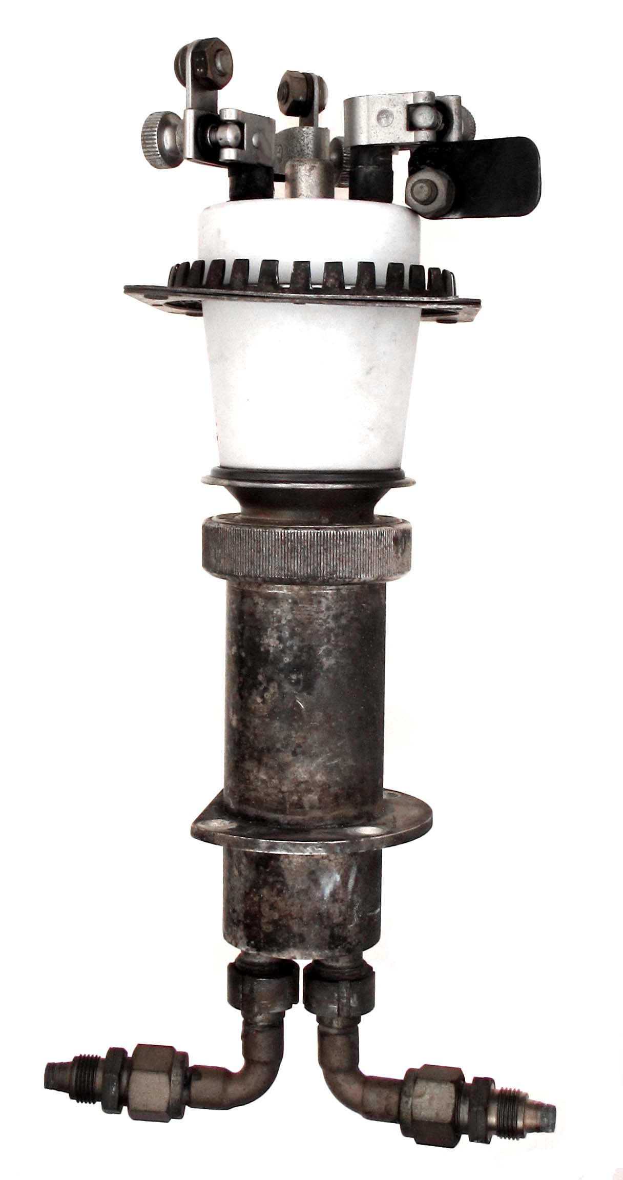The 6960A or TBW7/8000 is a power triode with a mu of 32. It requires water cooling and operates at full ratings to 30 MHz. The water jacket screws onto the tube. Newer tubes were made in ceramic. The last example is of the ceramic tube with all the filament connectors, grid ring and water jacket.