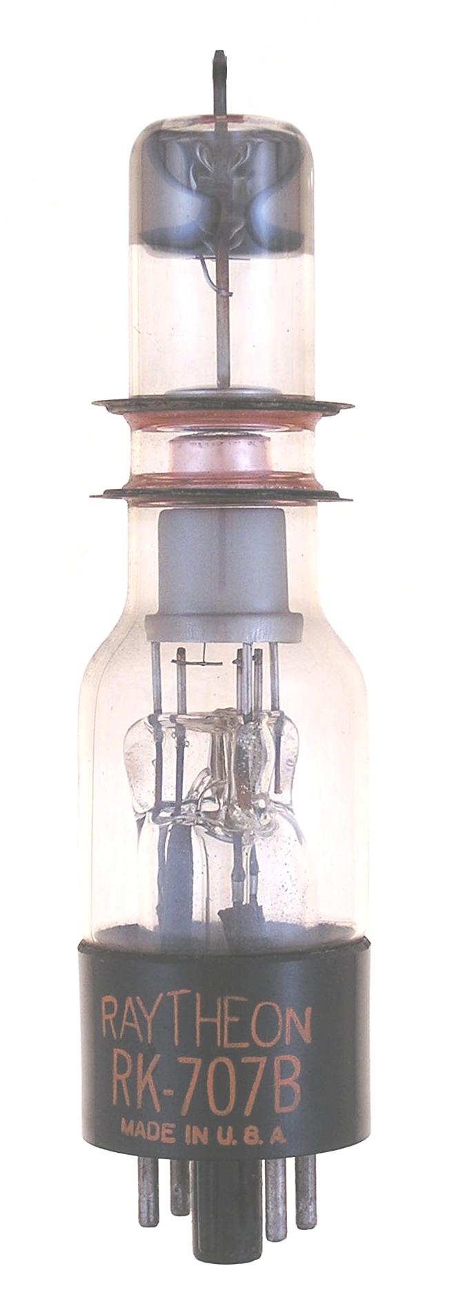 The 707B is a klystron capable of 140 mW on s-band. The second example has the clamp-on McNally cavity. Length = 5.00" Diameter = 1.25" Max voltage = Max current = Fil voltage = 6.3 Fil current = GOTO INDEX