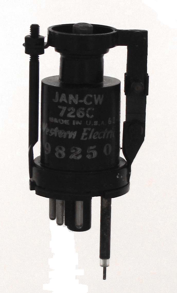 The 726C is a klystron capable of 20 mW from 2700 to 2900 MHz. Length = 3.50" Diameter = 1.50" Max voltage = 300 beam Max current = 32 ma Fil voltage = 6 Fil current = .44 amps GOTO INDEX