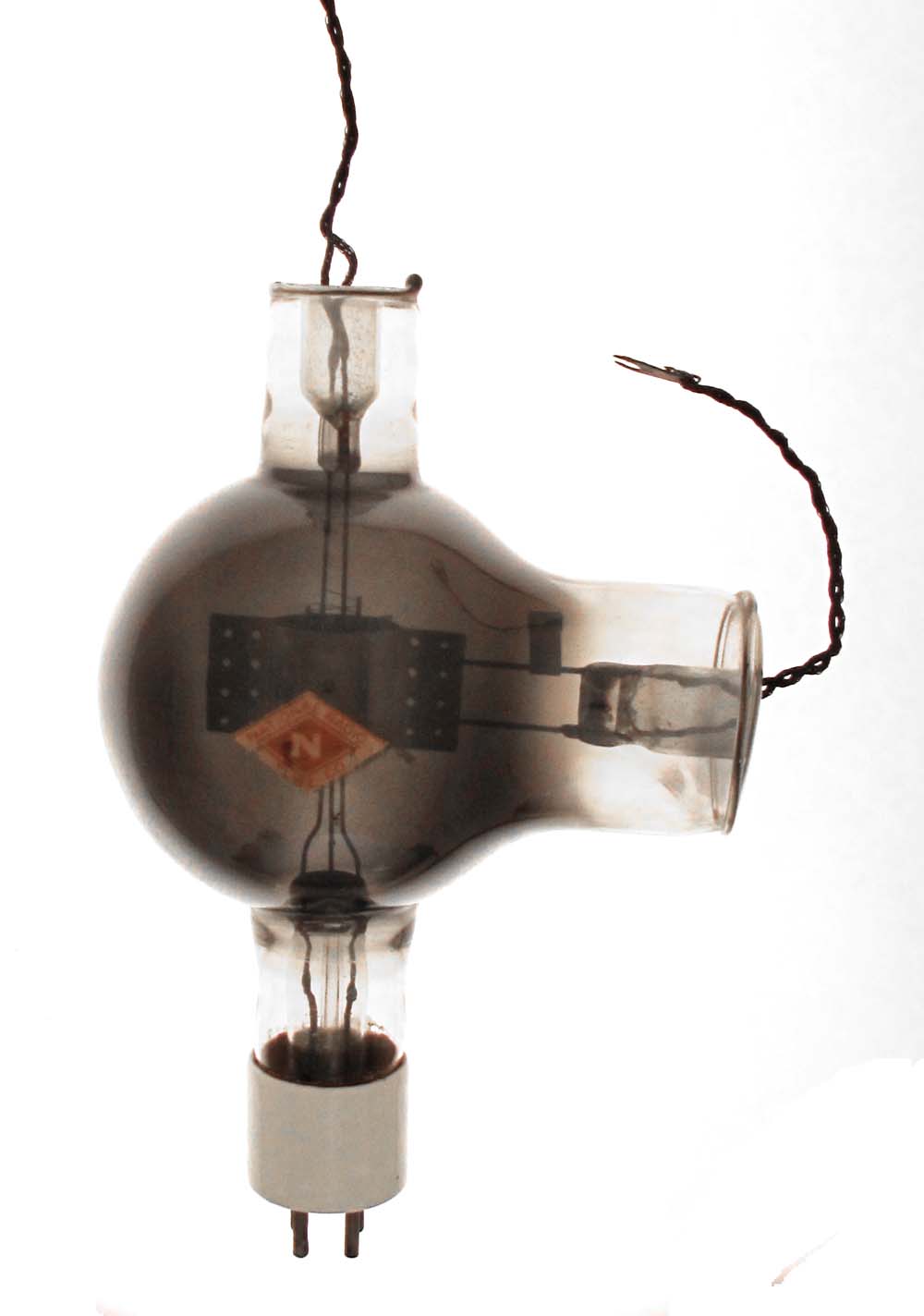 The DW-2 is a 75 watt dissipation triode with a mu of 12 made by the National Tube Company. The tube seems to be identical electrically as the RCA 852. National claimed that it had a 6 wire grid that made it better. Later production of this same tube was marked 852, as seen in the second example, probably to increase sales. Glass work seemed of poor quality.