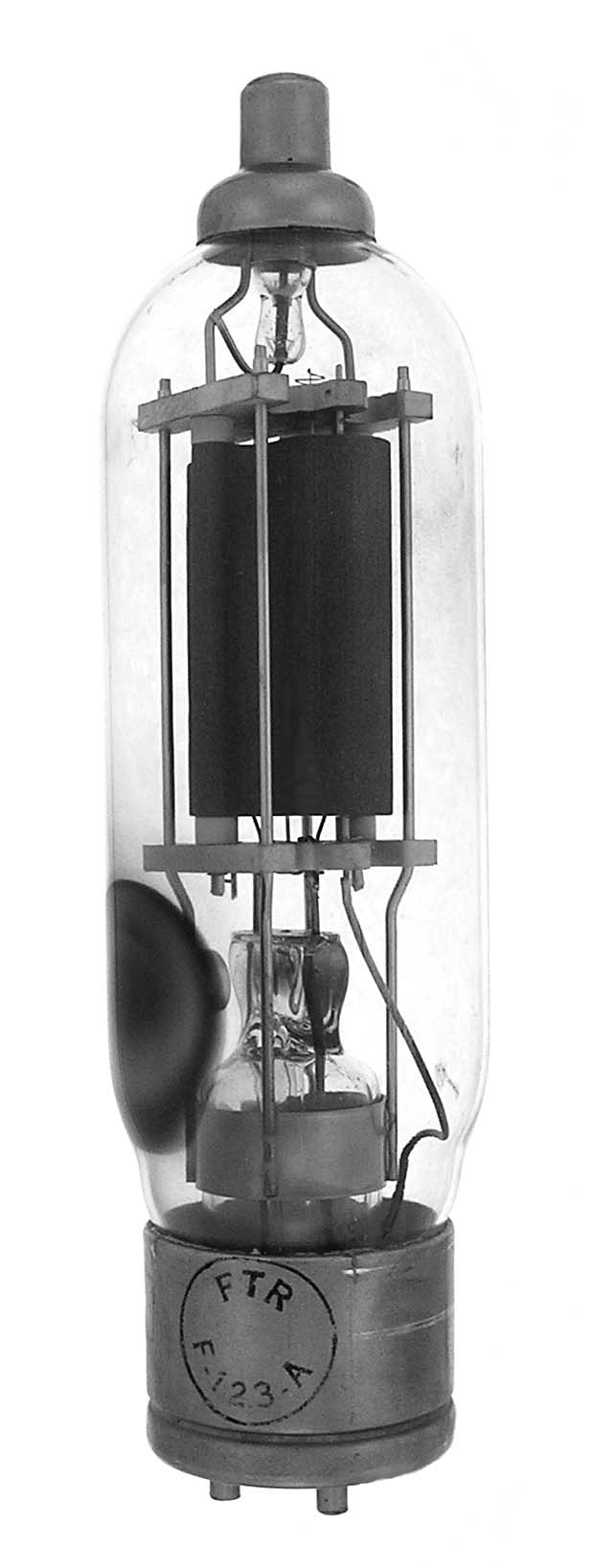 The F-123-A is a 125 watt dissipation triode with a mu of 14.5. They were made by Federal for use on WWII Liberty ships whose transmitter used 3. The MR-123A may be a direct replacement.