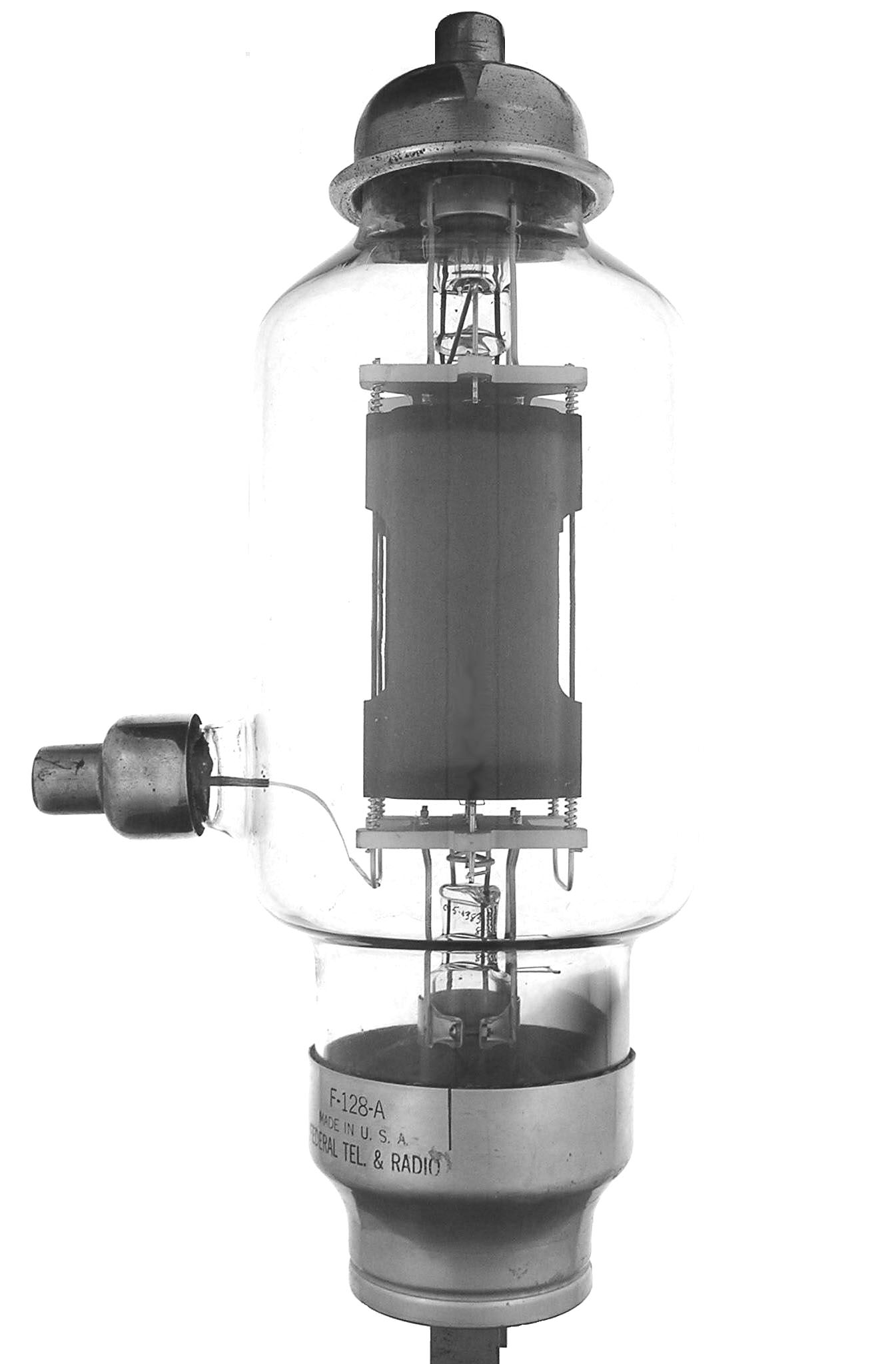 The F-128A is a 600 watt triode with a mu of 36 and a maximum frequency of 30 MHz for full ratings. Made by Federal and is similar to their F132A except for the mu and the 132A has a "250 watt" base.