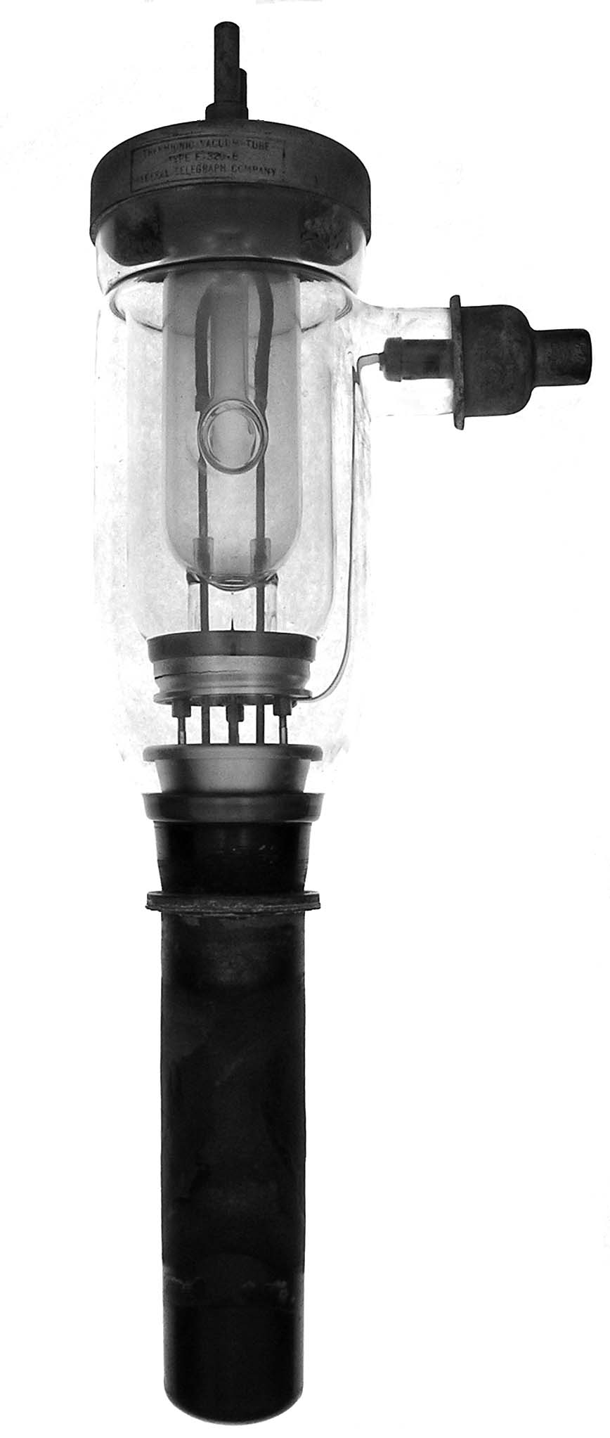 The F-320B is a water-cooled triode with a mu of 40 and a maximum frequency of 3 MHz that was made by Federal Telegraph.