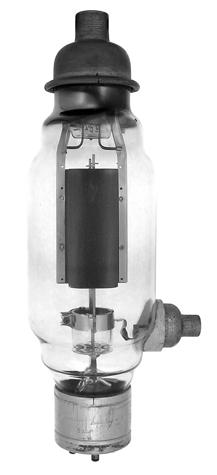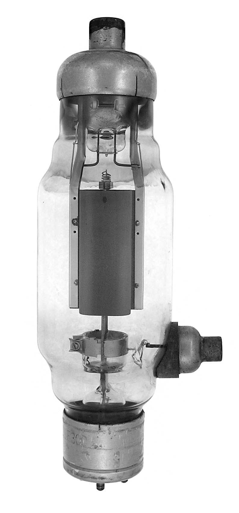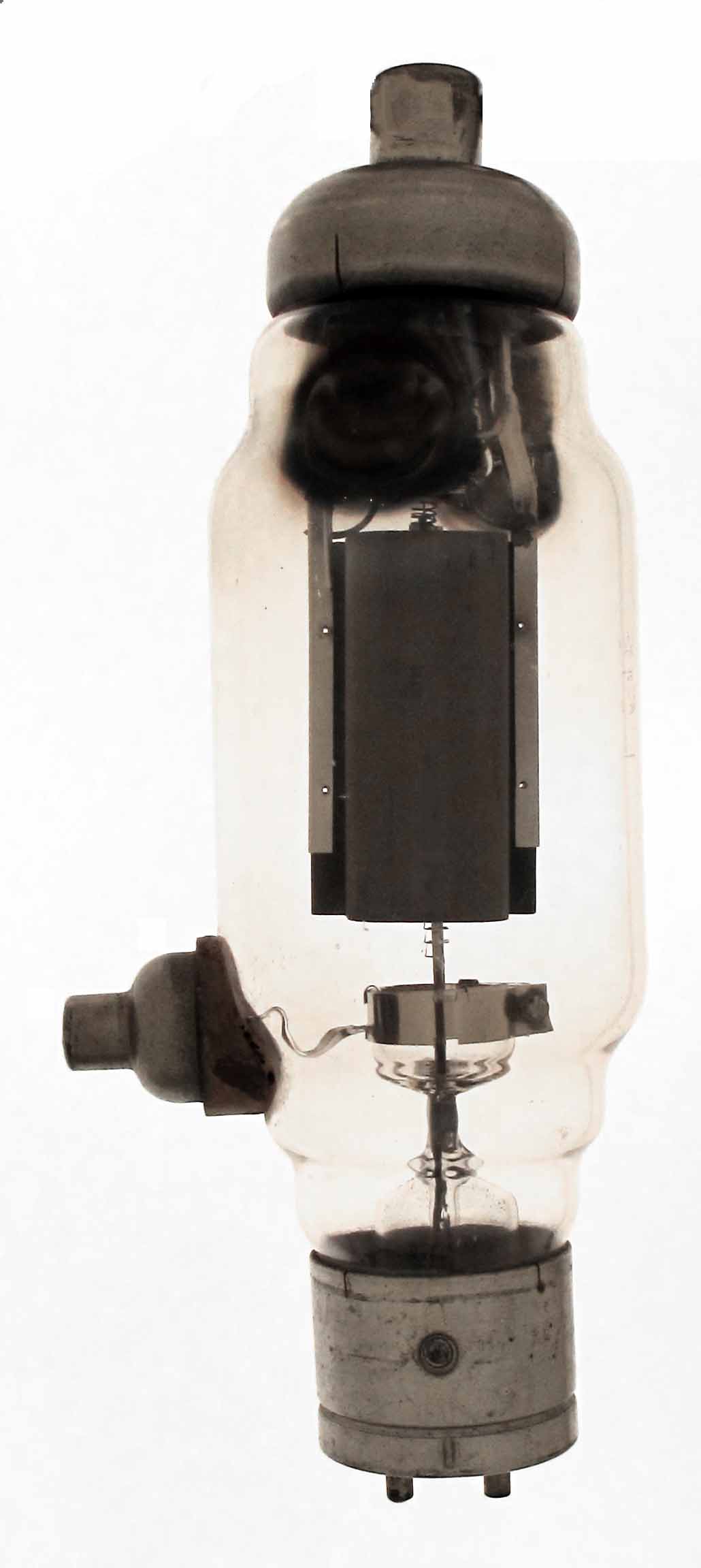 The HF-300 is a 200 watt dissipation triode with a mu of 23 and a maximum frequency for full ratings of 40 MHz developed by Amperex. The early tubes from the late 1930s had a brass "brimmed hat" top cap as in the second example. The third example was made by General Electronics and the fourth by National Union.