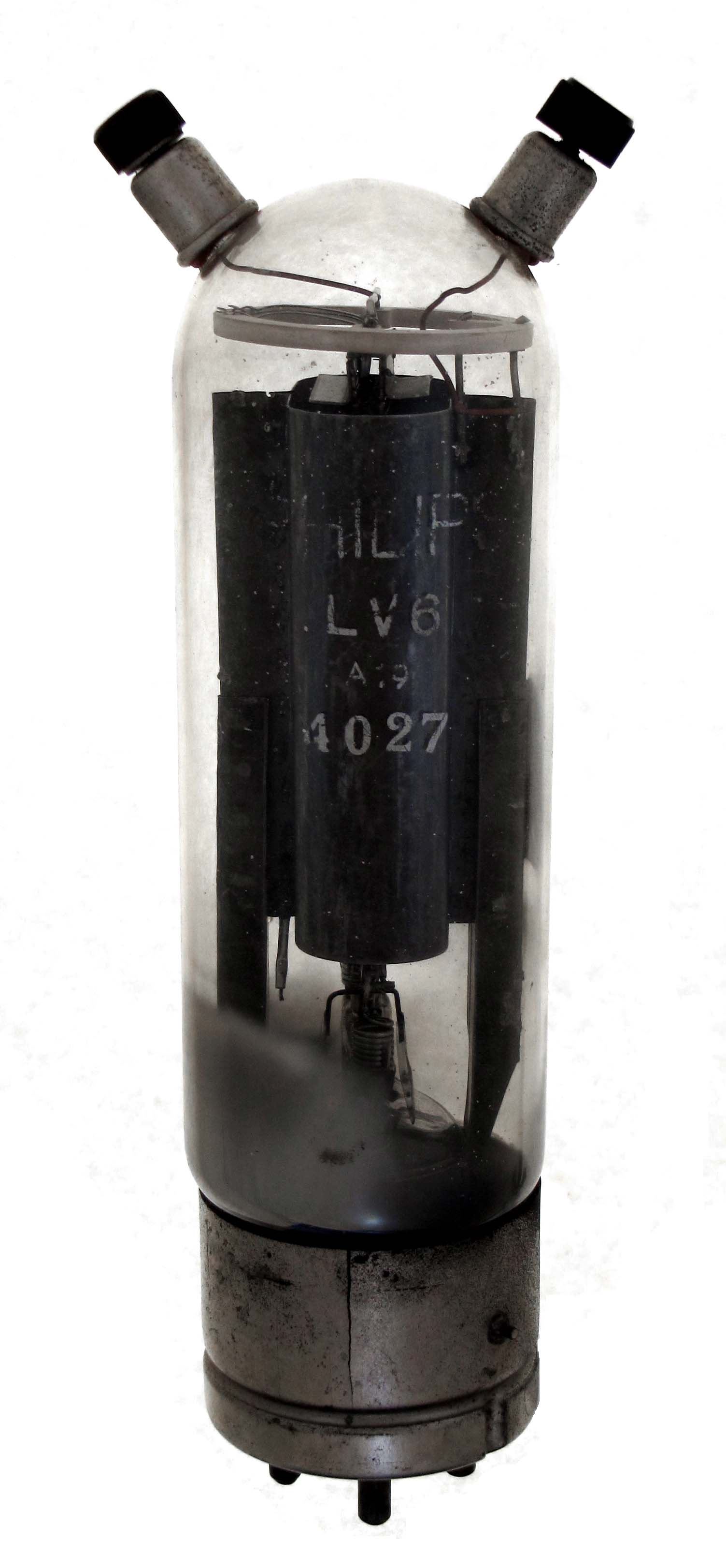 LV6 The LV6 is a triode made by Philips. Length = 7.50" Diameter = 1.87" (NOT ACROSS TERMS) Max voltage = 1000 Max current = 70 ma Fil voltage = 10 Fil current = 1.7 amps GOTO INDEX