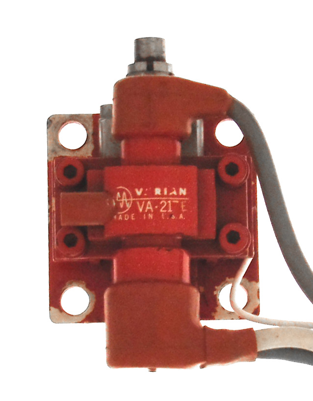 The VA-217E is a 600 mW klystron made by Varian. Frequency range is 8.5 to 9.6 GHz. Length = 2.50" Diameter = 1.63" Max resonator voltage = 525 Reflector voltage range = -100 to -350 Fil voltage = Fil current = GOTO INDEX