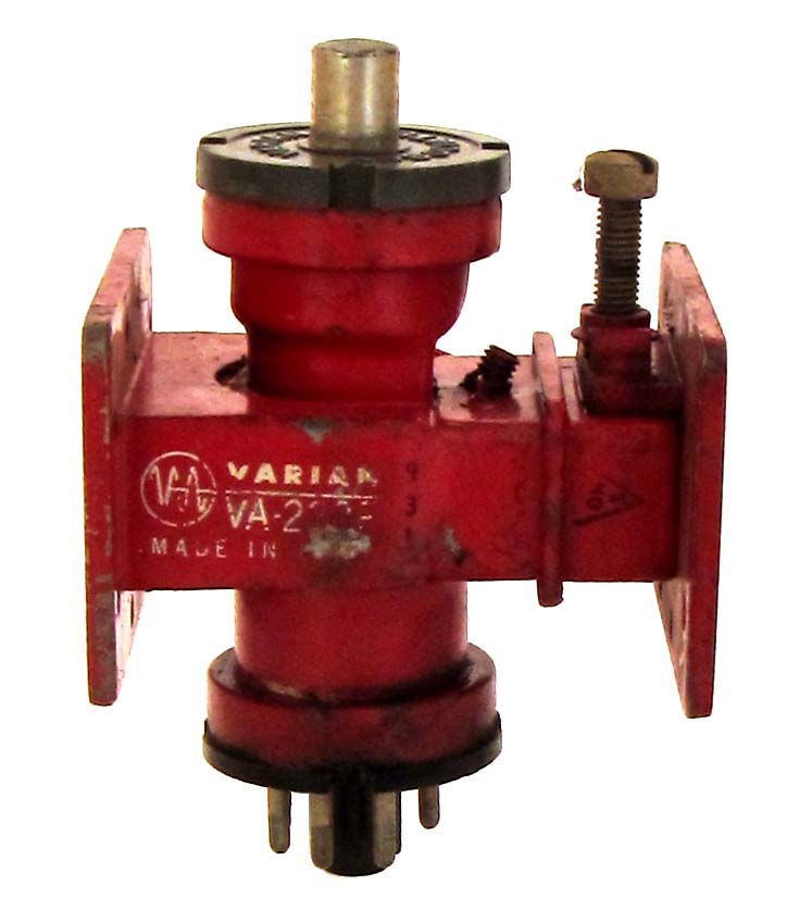 The VA-222F a is reflex klystron made by Varian. Length = 3.50" Diameter = 2.50" (FLANGE) Max resonator voltage = Reflector voltage range = Fil voltage = Fil current = GOTO INDEX