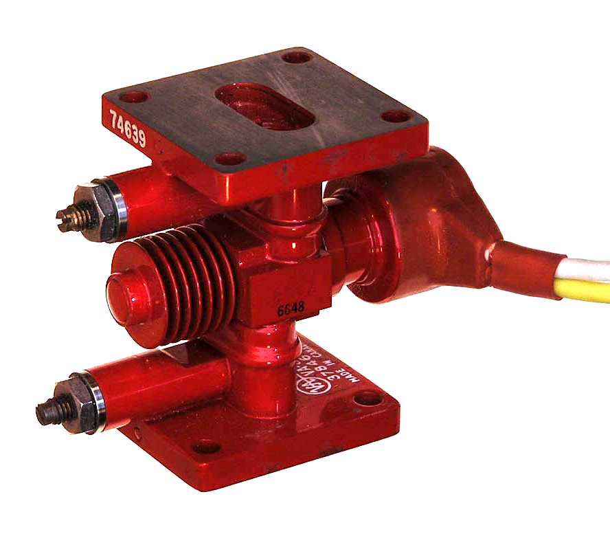 The VA-824B is a 2 watt klystron with WR-90 waveguide input and output. It provides 10 db gain at 9.8 GHz. Made by Varian,