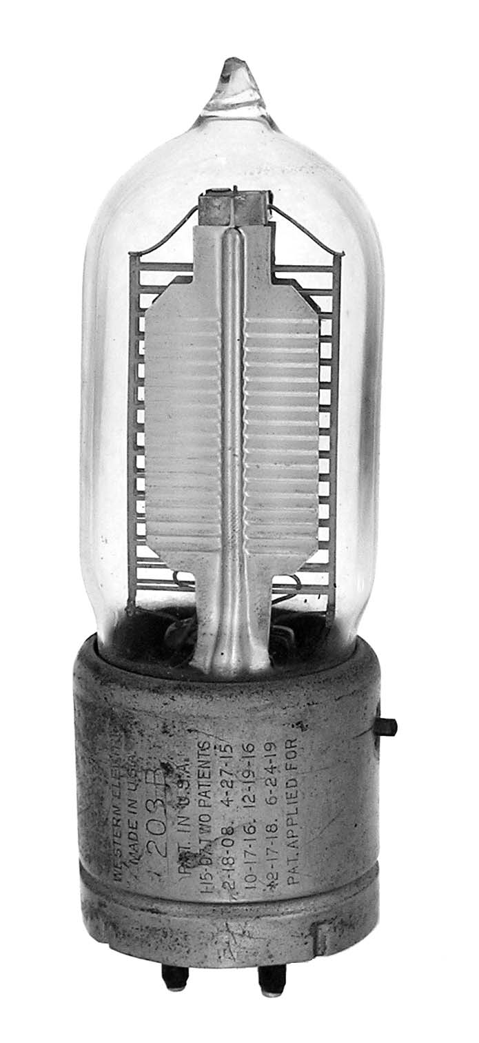 The WE203B is a triode designed to be a detector. It is the commercial version of the VT-1. Length = 4.25" Diameter = 2.25" Max voltage = 60 Max current = 2 ma Fil voltage = 2.5 Fil current = 1.1 amps GOTO INDEX