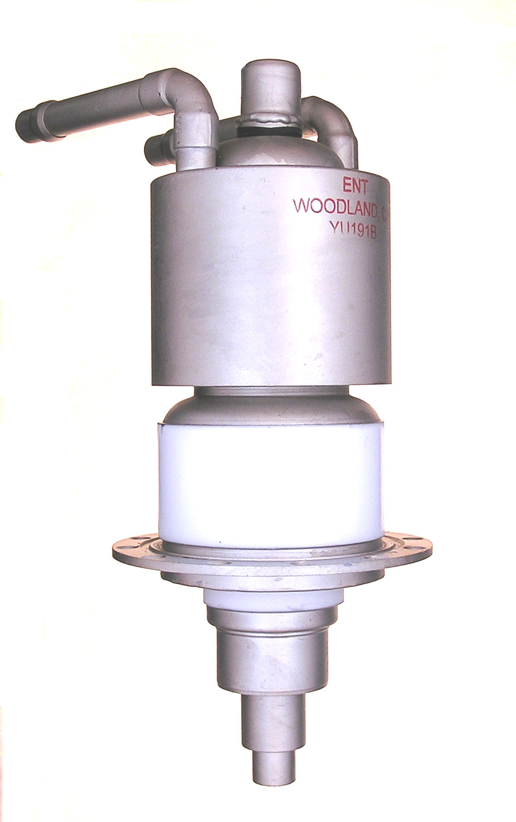 The YU-191B is a 4000 watt, water cooled, triode with a mu of 160 and a maximum frequency of 110 MHz. Designed for industrial heating. This example was made by ECONCO in Woodland, Ca. ENT = ECONCO New Tubes.