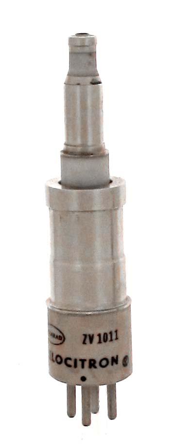 The ZV1011 is an external cavity, reflex klystron called a "Velocitron" made by Polarad. No data. Length = 3.80" Diameter = .85" Max voltage = Max current = Fil voltage = Fil current = GOTO INDEX